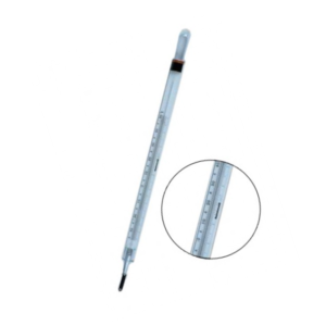 Стеклянный термометр с вложенной шкальной пластиной из листового стекла молочного цвета. Верхняя часть термометров закрыта металлическим колпачком с антикоррозийным покрытием. Применяются попарно в аспирационных психрометрах Ассмана большой модели.