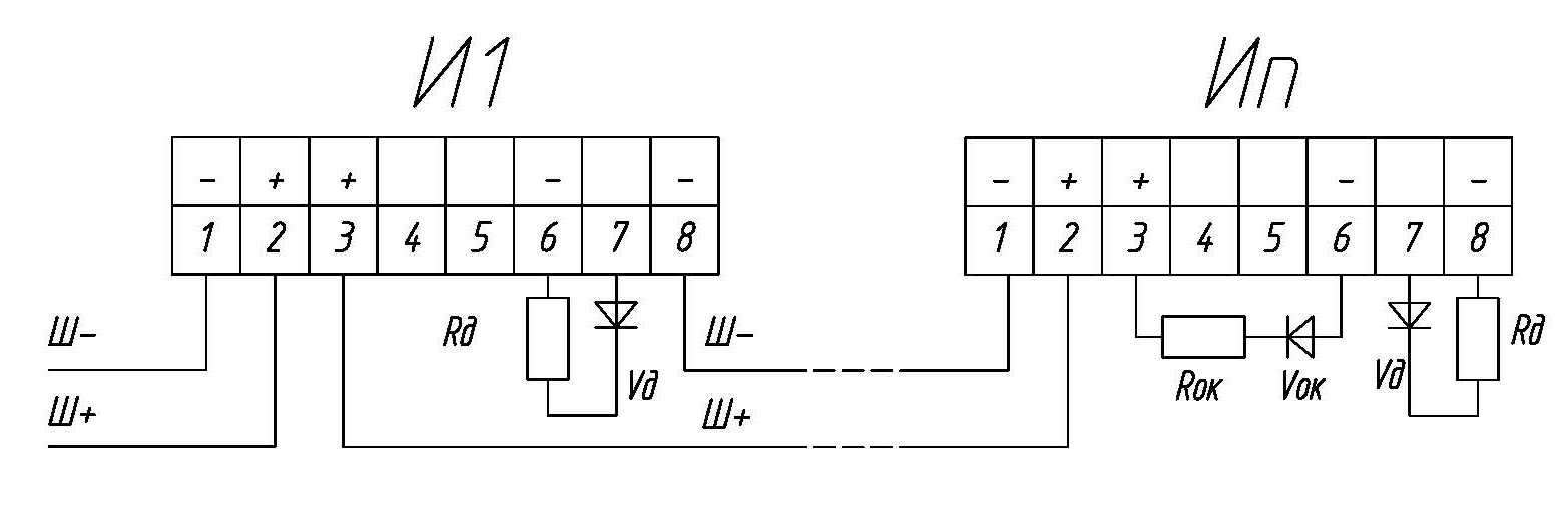 При поставке устанавливаются резисторы по схеме как на рис.2 (а) (Иn извещатель): rд = 1,2 кОм, Rок = 4, 7кОм