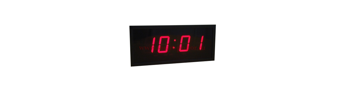Светодиодные сегментные индикаторы с высотой цифр отображающих часы и минуты 100мм., секунды 57мм., секунды выравниваются вниз. |
