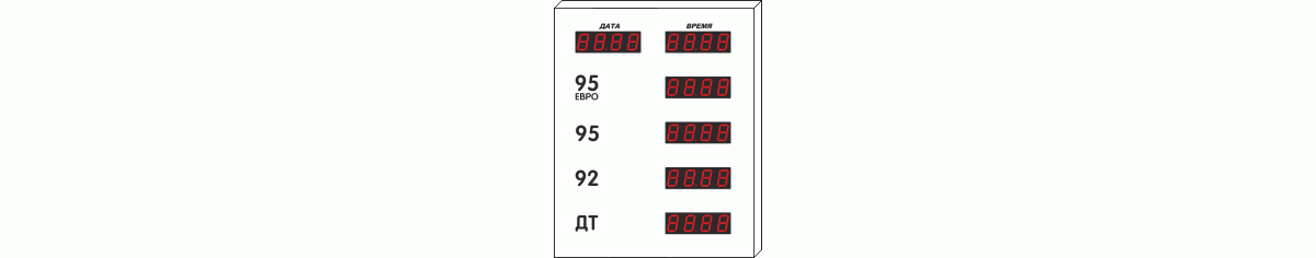 - Табло надкассовое для АЗС 60 мм с отображением даты и времени на отдельных модулях