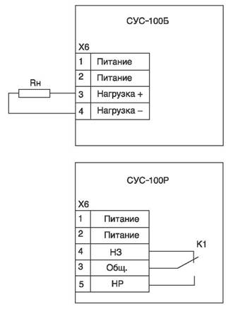- СУС-100 Б 5 - Релейный выход (СУС-100Р) - нагрузка на контакты реле: