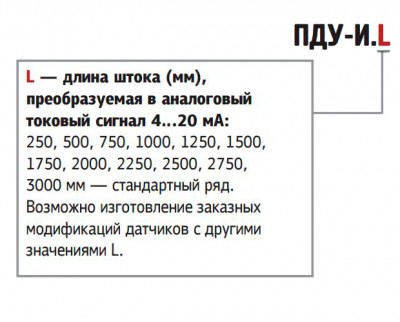 Существует несколько исполнений уровнемера отличающихся диапазоном измерения уровня от 250 до 3000мм.